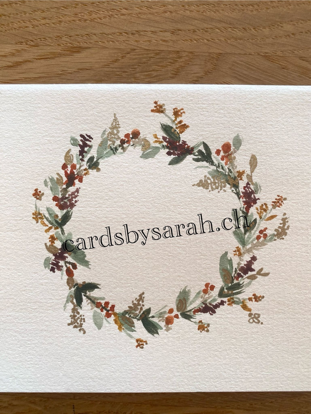 Auf Wunsch kann ein Schriftzug in die Mitte des Blumenkranzes geschrieben werden: den Artikel "Personalisierung" zusätzlich in den Warenkorb legen und den gewünschten Text im Warenkorb unter "Nachricht an den Händler" hinterlassen.