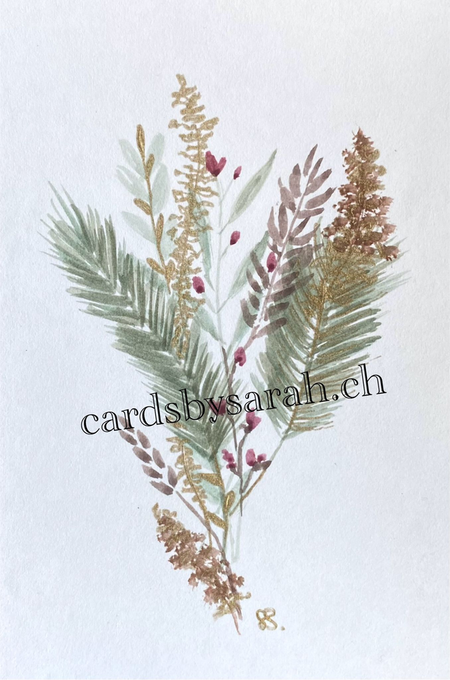 Braune Doppelkarte und Briefumschlag mit Einlageblatt.